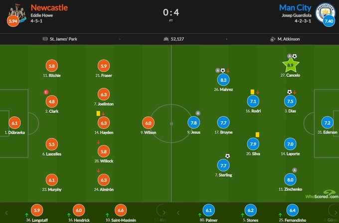 А найкращим гравцем визнано захисника «Сіті» Жоау Канселу, який отримав 8.9. Оцінку 8.3 отримав Марез.