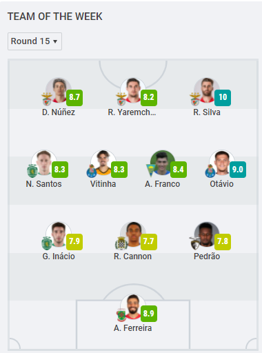 Український нападник «Бенфіки» Роман Яремчук потрапив до команди тижня чемпіонату Португалії.