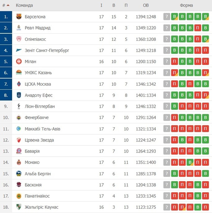 Євроліга. Реал обіграв ЦСКА, Баварія поступилася Басконії