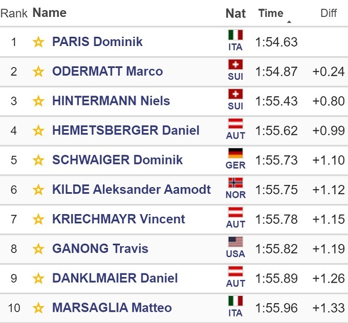 Італійський гірськолижник Домінік Паріс виграв швидкісний спуск на домашньому етапі Кубка світу в Борміо. Це 20-та перемога Паріса на Кубку світу, і 7 із них було здобуто саме на трасі в Борміо.