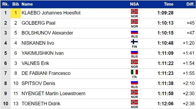 Норвезький лижник Йоханнес Клебо виграв третій етап Тур де Скі-2022 – мас-старт на 15 км вільним стилем у німецькому Оберстдорфі. Він випередив росіянина Олександра Большунова та партнера по команді Шюра Рьоте.