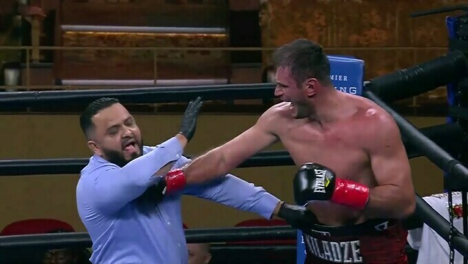 Яго штовхнув суддю, і права рука влучила в обличчя. Третій у рингу здивувався, але загнав грузина у кут. На цьому все. Шоста дострокова поразка Яго. Він пішов із рингу до оголошення вердикту.