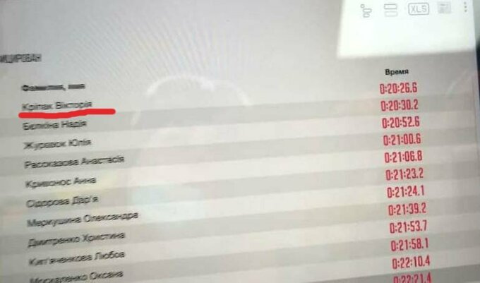 Цього разу ситуація зовсім інша. В альтернативному підсумковому протоколі жіночого спринту на першому рядку красується 14-річна Вікторія Кріпак, якій якимось незрозумілим чином вдалося на кілька секунд випередити офіційну чемпіонку Надію Бєлкіну.