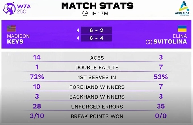 Еліна Світоліна (Україна) – Медісон Кіз (США) – 2:6, 4:6