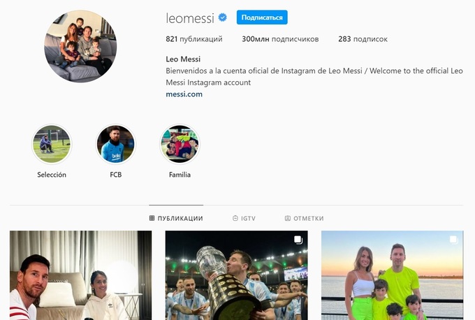 Форвард ПСЖ та збірної Аргентини Ліонель Мессі подолав позначку 300 мільйонів підписників у Instagram.