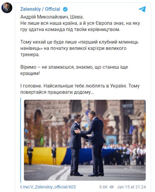 «Андрій Миколайович, Шева. Не лише вся наша країна, а й уся Європа знає, на яку гру здатна команда під твоїм керівництвом.