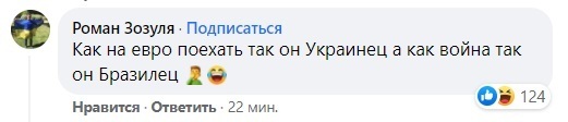 «Як на Євро поїхати, то він українець, а як війна – то бразилець», – написав у коментарі до новини Зозуля.
