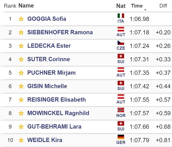Італійська гірськолижниця Соф’я Годжа виграла швидкісний спуск на домашньому етапі Кубка світу у Кортіна д’Ампеццо. Вона випередила австрійку Рамону Зібенхофер та чешку Естер Ледецку.