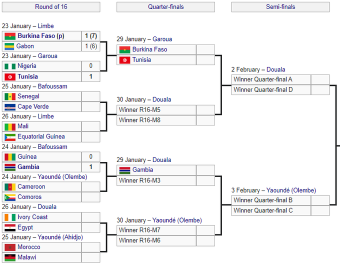 У 1/4 фіналу Гамбія зіграє з переможцем матчу між Камеруном та Коморськими островами, який пройде ввечері.