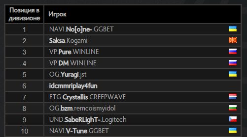 У списку мідер NAVI обійшов Мартіна Saksa Саздова, котрий тепер займає топ-2. У топ-5 рейтингу потрапили гравці Virtus.pro Дмитро DM Дорохін та Іван Pure Москаленко, а також учасник OG Артем Yuragi Голубєв.