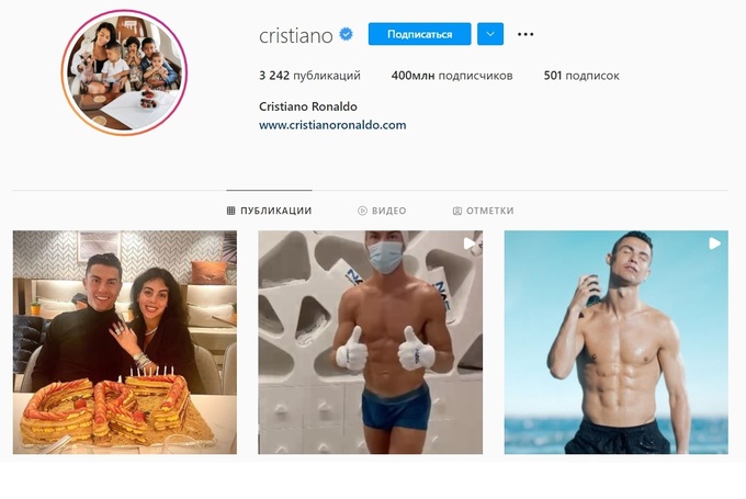 Нападник «Манчестер Юнайтед» та збірної Португалії Кріштіану Роналду став першою людиною, яка набрала 400 мільйонів підписників у Instagram.