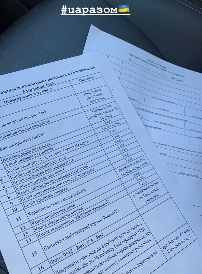 На сторінці у Instagram Сергій виклав документи про прийом до тероборони Голосіївського району столиці. Такі дії пов'язані з можливим новим вторгненням Росії в Україну.