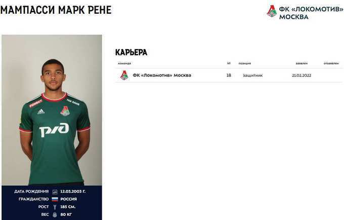 18-річний український захисник Марк Мампассі, який у січні перейшов із донецького «Шахтаря» до «Локомотива», заявлений за московську команду як росіянин. Це означає, що Мампассі прийняв російське громадянство.