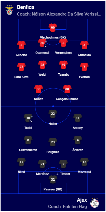 Бенфіка – Аякс. Яремчук – у резерві. Стартові склади команд