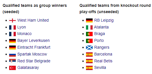 У жеребкуванні візьмуть участь 16 команд: 8 володарів перших місць на груповому етапі (сіяні) та 8 переможців стикових матчів (несіяні).