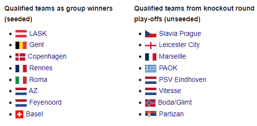 У жеребкуванні візьмуть участь 16 команд: 8 володарів перших місць на груповому етапі (сіяні) та 8 переможців стикових матчів (несіяні).