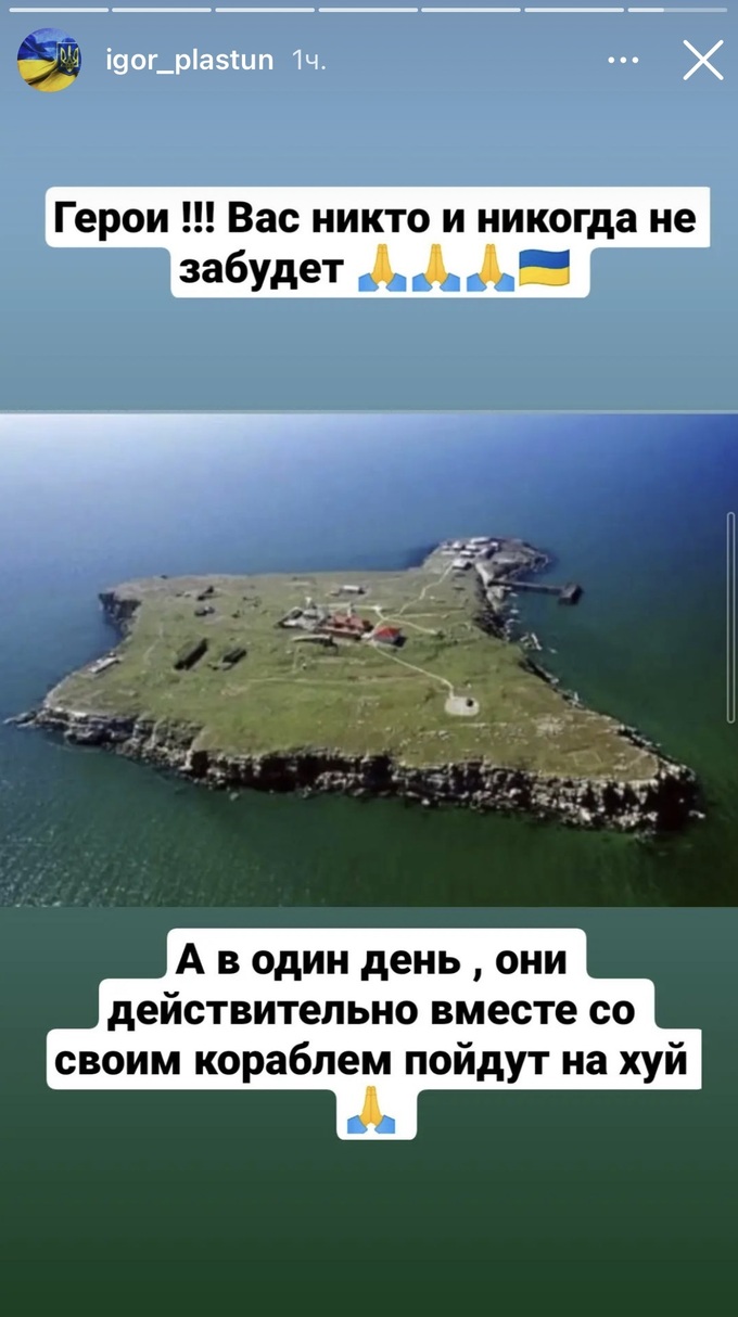 «Герої! Вас ніхто ніколи не забуде. А одного дня, вони справді разом зі своїм кораблем підуть на х**», – написав Пластун в інстаграмі.