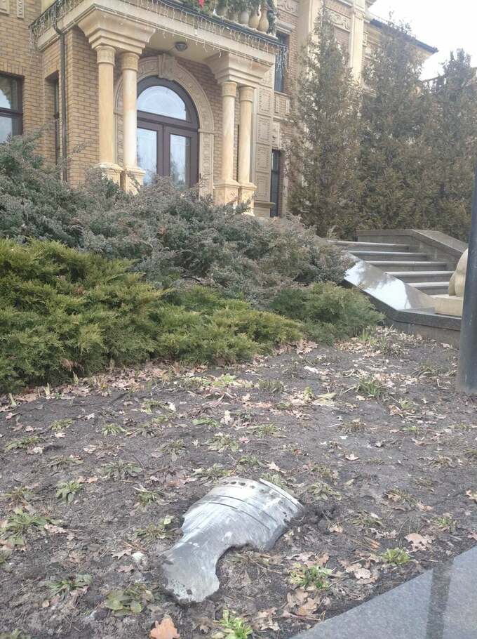 Прес-секретар президента Сергій Никифоров у Facebook: «У двір президентської дачі в Конча-Заспі впав, ймовірно, уламок ракети».