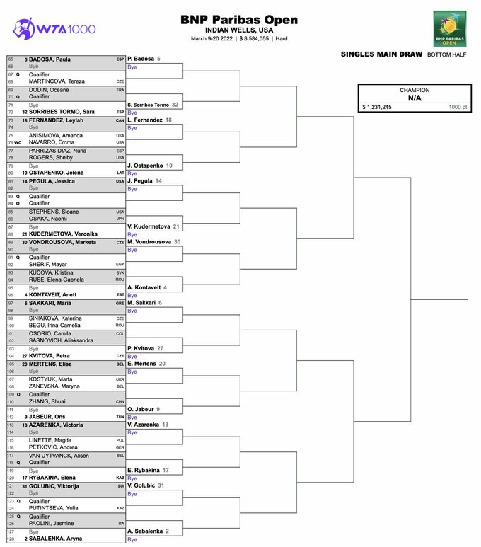 Марта Костюк (№54 WTA) розпочне турнір зустріччю проти екс-українки Марини Заневської (№68 WTA), яка зараз представляє Бельгію.