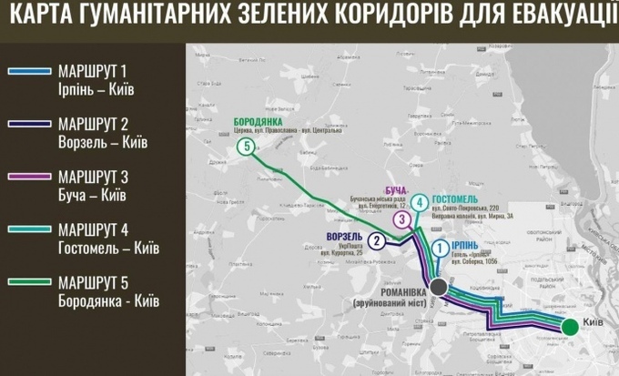 10:00. Україна та РФ погодили евакуацію шістьма зеленими коридорами