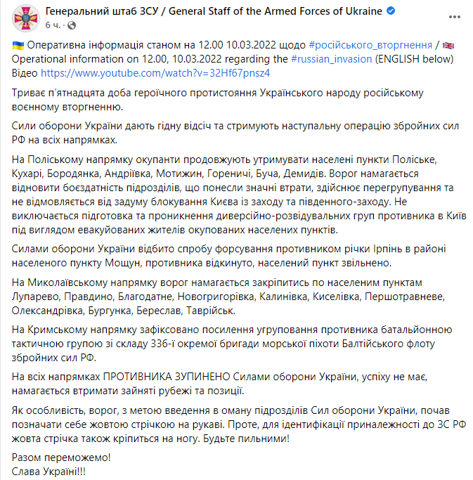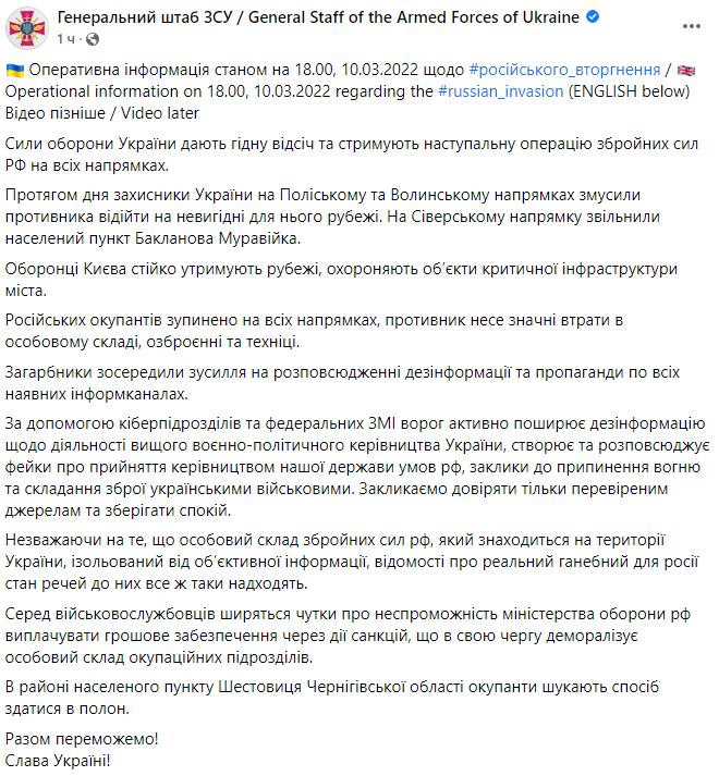 — 🇺🇦Armed Forces (@ArmedForcesUkr) March 10, 2022