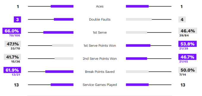 Але далі не пішло. У другому сеті британка зробила на брейк більше (три проти двох), зрівнявши результат. Вирішальний сет Світоліна розпочала з трьох програних геймів (два на своїй подачі) і врятувати матч уже не змогла.