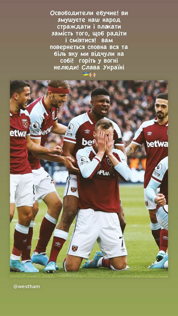 «Визволителі еб**і. Ви змушуєте наш народ страждати та плакати замість того, щоб радіти та сміятися. Вам повернеться весь біль, який ми відчули на собі. Горіть у вогні, нелюди. Слава Україні», – написав Бойко.