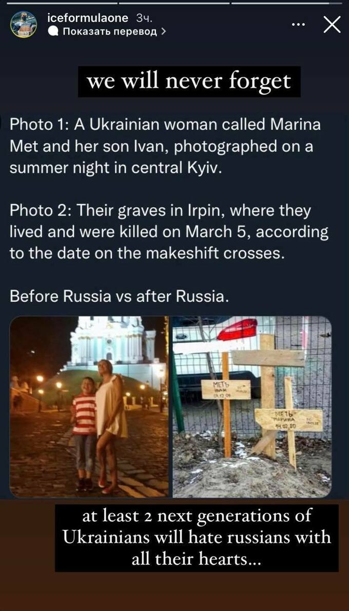 «Ми ніколи не забудемо! Як мінімум 2 покоління українців ненавидітимуть росіян усім серцем…», - написав Влад.