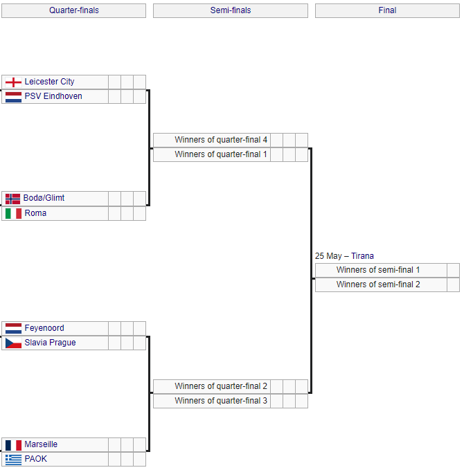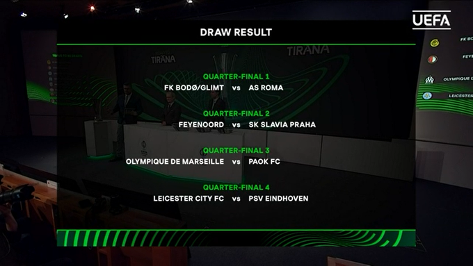 18 березня о 16:00 за Києвом у штаб-квартирі УЄФА у швейцарському Ньоні відбулося жеребкування 1/4, 1/2 та фіналу Ліги конференцій.