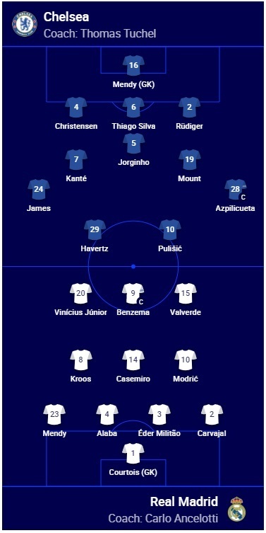 «Челсі»: Менді – Крістенсен, Тіаго Сілва, Рюдігер – Джеймс, Канте, Жоржіньо, Маунт, Аспілікуета – Хаверц, Пулішич