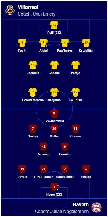 «Баварія»: Нойер - Девіс, Люка Ернандес, Упамекано, Павар - Мусьяла, Кімміх, Гнабрі, Мюллер, Коман - Левандовськи