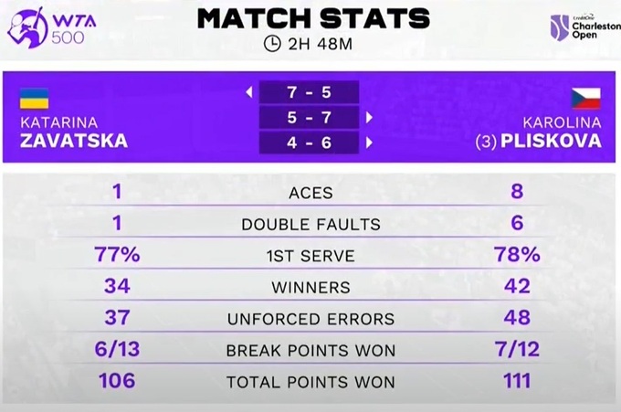 Для Плішкової, яка пропустила кілька місяців через перелом, це перша перемога в поточному сезоні.
