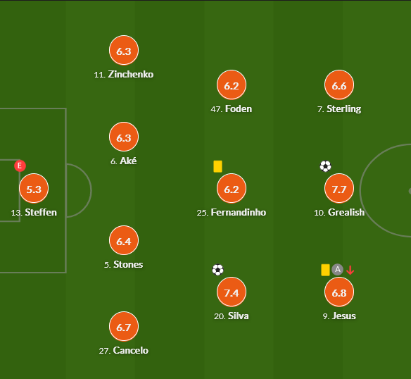 За підсумками зустрічі Зінченко отримав оцінку 6,3. Гірше у команді тільки у воротаря Стеффена та хавбеків Фодена та Фернандіньйо.