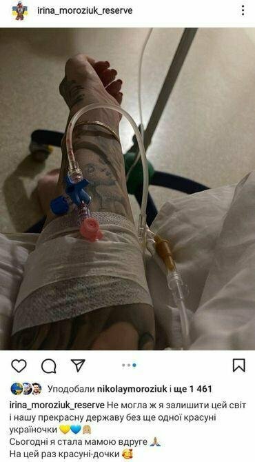 Сьогодні я стала матір'ю вдруге. Цього разу красуні-дочки», - написала Ірина Морозюк у своєму Instagram.