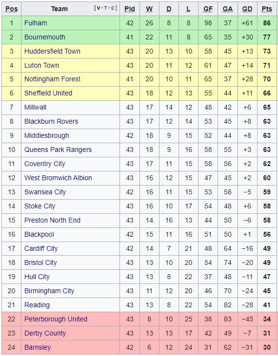 «Дачники» під керівництвом Марко Сілви набрали 86 очок і гарантували собі вихід до Прем'єр-ліги. У топ-3 АПЛ також входять «Борнмут» (77) та «Хаддерсфілд» (73).