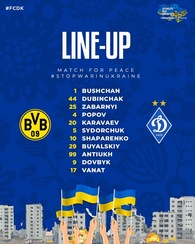Unsere Start-1️⃣1️⃣ für das Benefizspiel!#BorussiaVerbindet #StandWithUkraine pic.twitter.com/uXH7Aradby