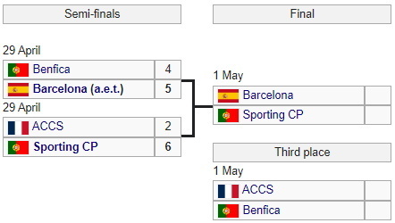 В іншому півфінальному матчі «Спортінг» не мав проблем із французьким клубом «Аньєр-Вільнєв» (6:2), який у фіналі чотирьох замінив російську «Тюмень», дискваліфіковану з ЛЧ через вторгнення Росії в Україну.