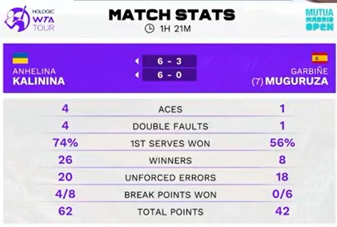 Ангеліна Калініна (Україна) – Гарбіньє Мугуруса (Іспанія) – 6:3, 6:0