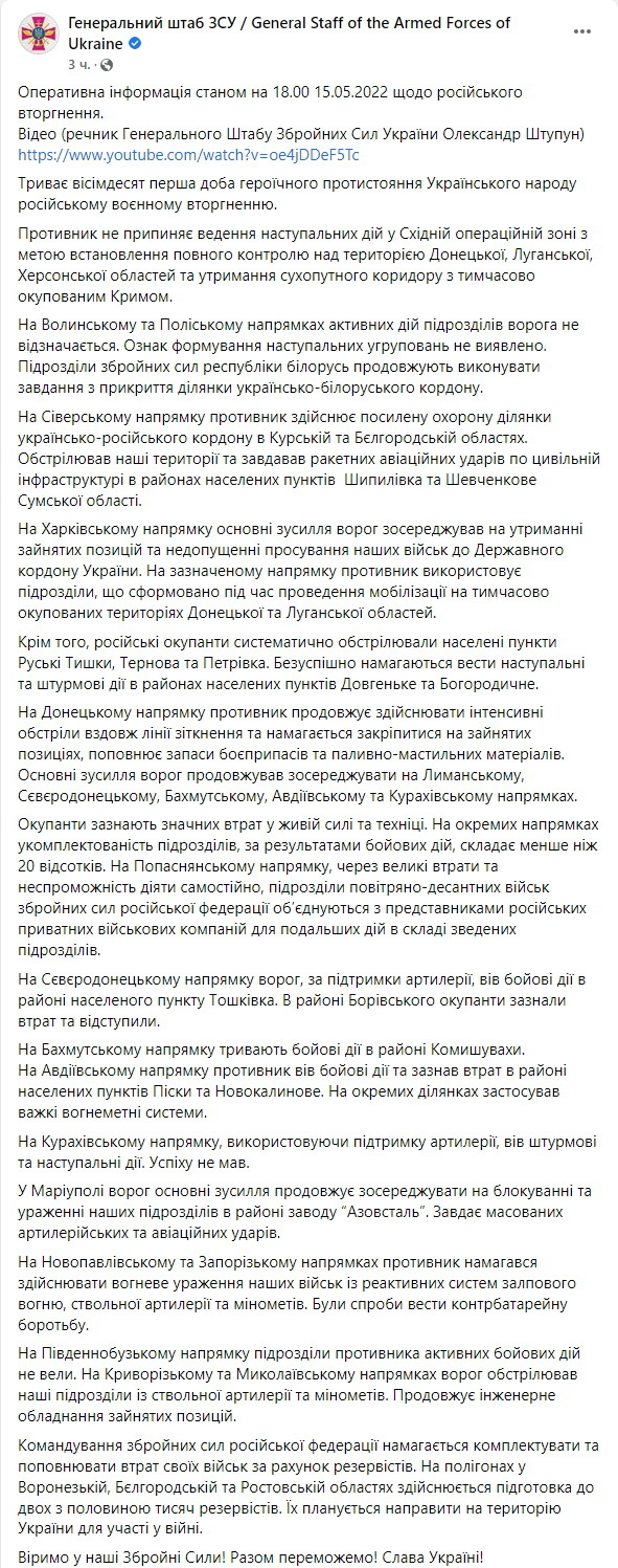 00:00. Початок 81-го дня війни, 15 травня