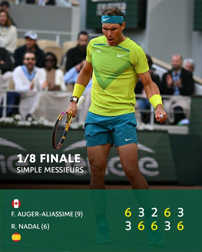 У матчі четвертого кола 13-разовий переможець ґрунтового мейджора з великими труднощами обіграв канадця Фелікса Оже-Альяссіма.