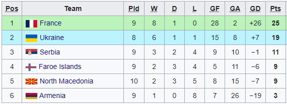 6 червня Франція очікувано у гостях перемогла команду Вірменії (4:1). Тепер команді Руслана Ротаня треба виграти особисту зустріч проти Франції (9 червня), причому з різницею у 6 м'ячів або більше. А потім здолати Вірменію (12 червня).