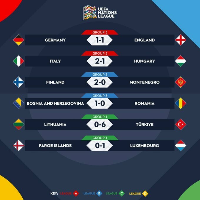 Ліга націй. Англія врятувала гру проти Німеччини, Італія перемогла Угорщину