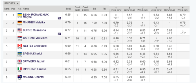 Етап у Римі у четвер приніс Україні дві нагороди. Марина Бех-Романчук завоювала золото у секторі стрибків у довжину. Спортсменка показала результат 6.85м.