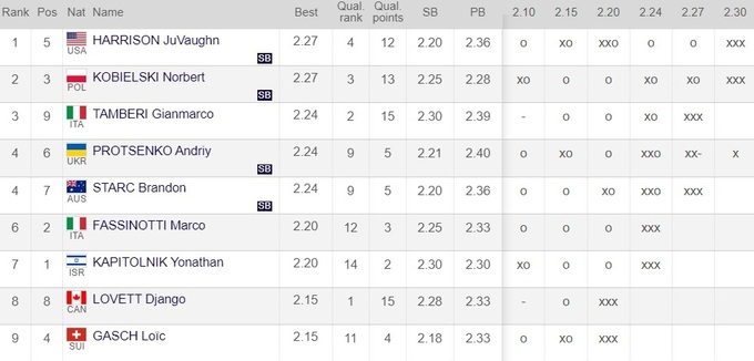 Проценко показав свій найкращий результат сезону - 2,24 метра і посів четверте місце.