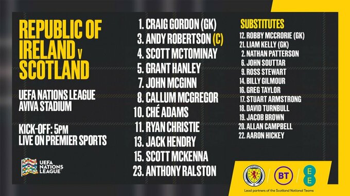 У суботу, 11 червня, у Дубліні на стадіоні «Авіва Стедіум» відбудеться матч 3-го туру Ліги націй, у якому зіграють Ірландія та Шотландія.