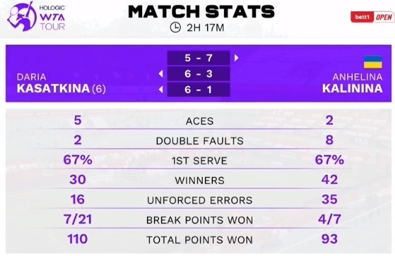Ангеліна Калініна (Україна) – Дар’я Касаткіна – 7:5, 3:6, 1:6