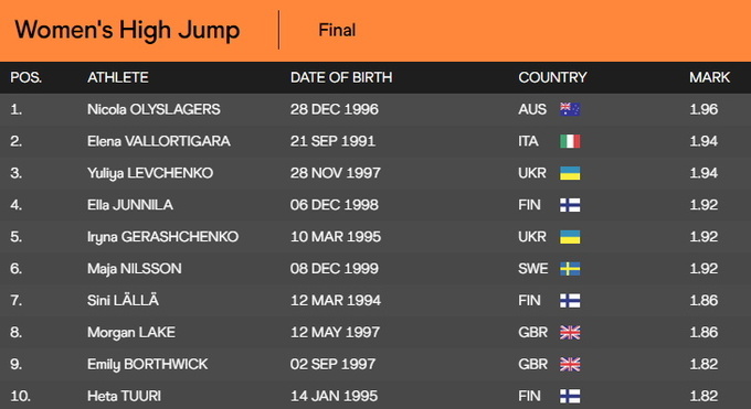 Третє місце українці в секторі для стрибків у висоту принесла вдала спроба на 1.94 м, що стало її найкращим результатом у сезоні.