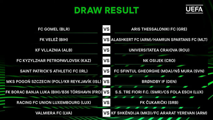 - Борац Баня-Лука (Боснія і Герцеговина) / Б-36 (Фарери) – Тре Фіорі (Сан-Марино) / Фола (Люксембург)
