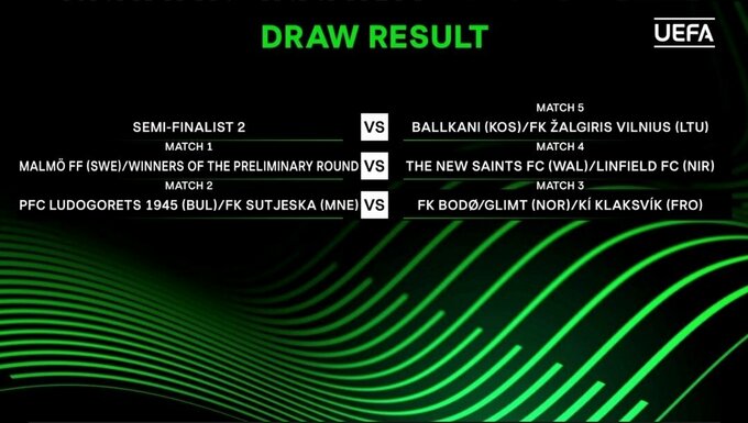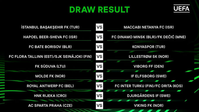 - Лудогорець (Болгарія) / Сутьєска (Чорногорія) – Буде-Глімт (Норвегія) / Клаксвік (Фарери)