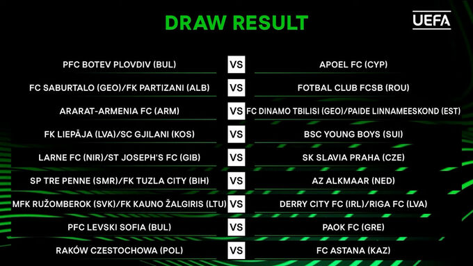 - Лех (Польща) / Карабах (Азербайджан) – Слован (Словаччина) / Динамо Батумі (Грузія)